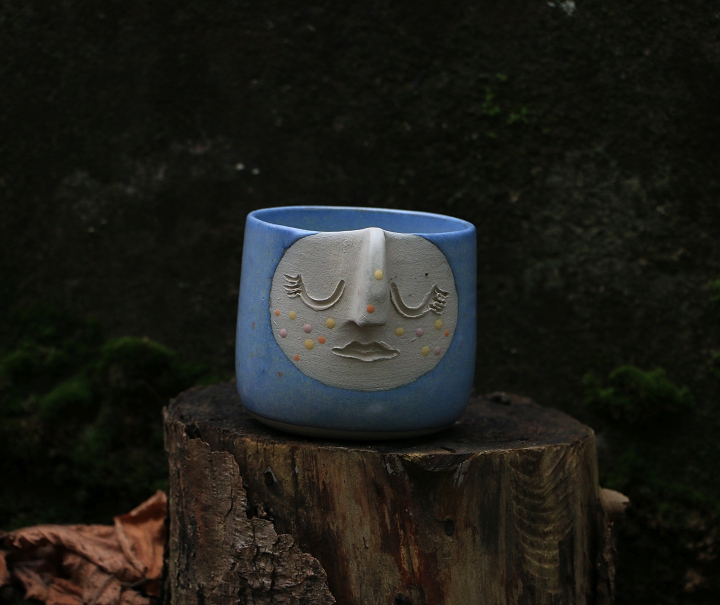 hellblau, knapp 300 ml, Höhe ca. 8cm, Durchmesser Öffnung ca. 8 cm